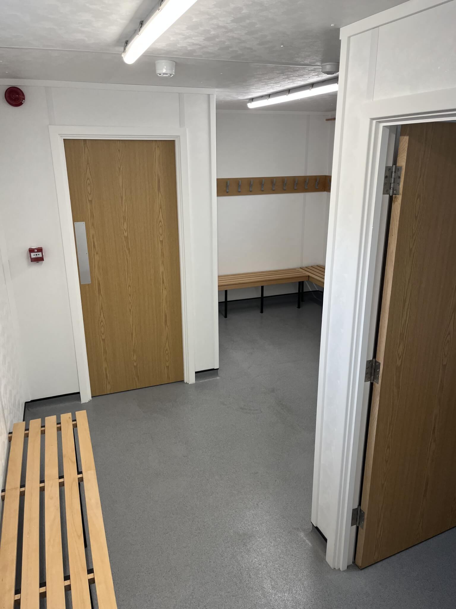 Following the tender process, we were engaged by the client to provide a changing facility to support the colleges existing 3G pitches. The facility is mainly for college use, but it can be offered as part of the 3G lettings increasing the revenue stream. With 2 changing rooms, home and away, a DDA wet room that can be doubled up as an official’s changing room, the building meets the sports department requirements. The rearming space in the building provides a warm dry storage for DofE equipment. A preferred location was chosen, and following various site meetings, and drawing revisions the final location was agreed. The site was cleared and foundations prepared ready for the building installation, access was tight but with careful planning the building was installed and weather tight in a day. Paths and perimeter finishes were then applied helping the building sit perfectly in its surrounds. This is a perfect example of what can be achieved with Derbybeech flexible manufacturing systems and a collaborative approach.